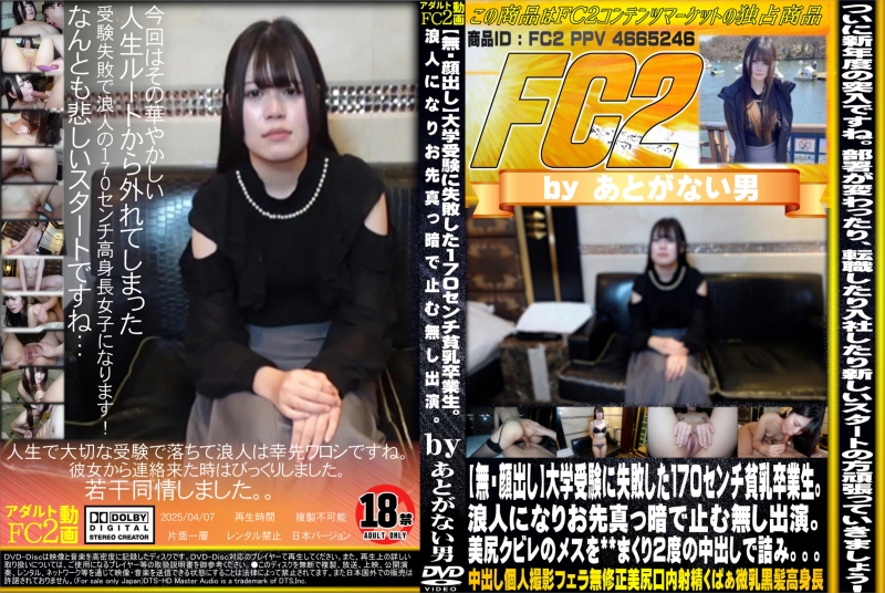 大学受験に失敗した170cセンチ貧乳卒業生。浪人になりお先真っ暗で止む無し出演。美尻クビレのメスを※※まくり2度の中出しで詰み。。。